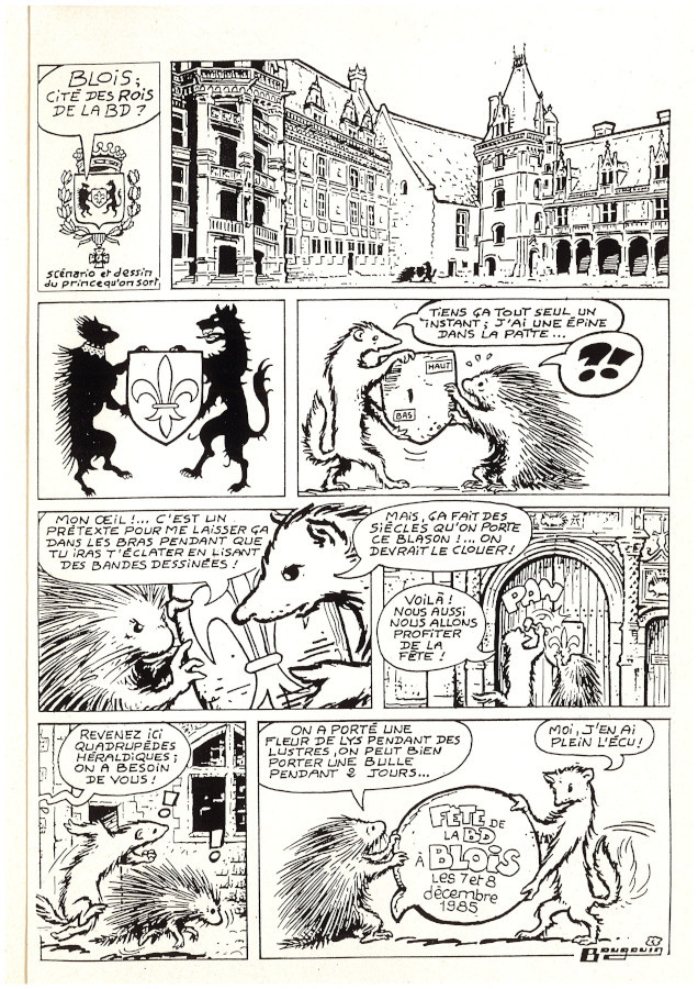 Créé en 1984, le festival BD BOUM a lieu tous les ans à Blois au mois de novembre. Initialement organisé par l'association Val de Loire Animation, son objectif est de promouvoir, soutenir et favoriser toutes initiatives en faveur de la bande dessinée. Cette année, la 41ème édition se déroulera du 22 au 24 novembre 2024, principalement à la Halle aux grains, à la Bibliothèque Abbé Grégoire et à la Maison de la BD, basée depuis février 2015 au 3, rue des Jacobins. Le service mutualisé des Archives de la Ville de Blois, d'Agglopolys et du CIAS du Blaisois a choisi pour novembre, de saluer par un p'tit doc inédit, les 40 ans de l'évènement. Loin des clichés, les archivistes partagent en effet, comme certains auteurs de BD historiques, ce lien fort avec l'Histoire ainsi que la volonté de mettre en avant, de façon parfois originale, leurs missions et les sources qu'ils conservent, à travers le dessin. Chose peu connue : notre service conserve quelques archives relatives aux précédentes éditions de BD BOUM : fascicules des éditions de 1984 et 1987, affiches classées en série 1_Fi, articles de presse, jeu de cartes Zoo monsters de Stan Manoukian, dossier d'appel d'offre pour la construction de la Maison de la BD, la BD Tranches de quartiers réalisée par Bastien Griot et Renaud PENNELLE avec le concours des Archives de Blois, dans le cadre des cinquante ans de la ZUP en 2015. Autant de pépites à découvrir qui montrent l'importance des sources que constituent les archives pour nos dessinateurs et la place essentielle qu'elles occupent dans les actions visant à valoriser l'histoire locale.